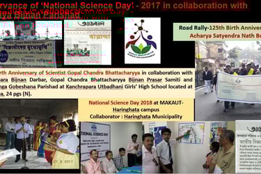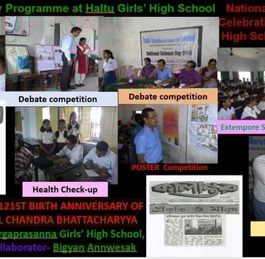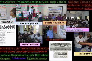 We do regular interventions at underprivileged schools - Students Activity Programs with Debate, Extempore Speech, Poster Competition and Quiz on Science and Environment. We celebrate Pt. Iswar Chandra Vidyasagar Birthday, International Science Day, World Environmental Day, World Population Day amongst other celebratory days. We collaborate with NASI and INSA. Glimpses of our celebrations: